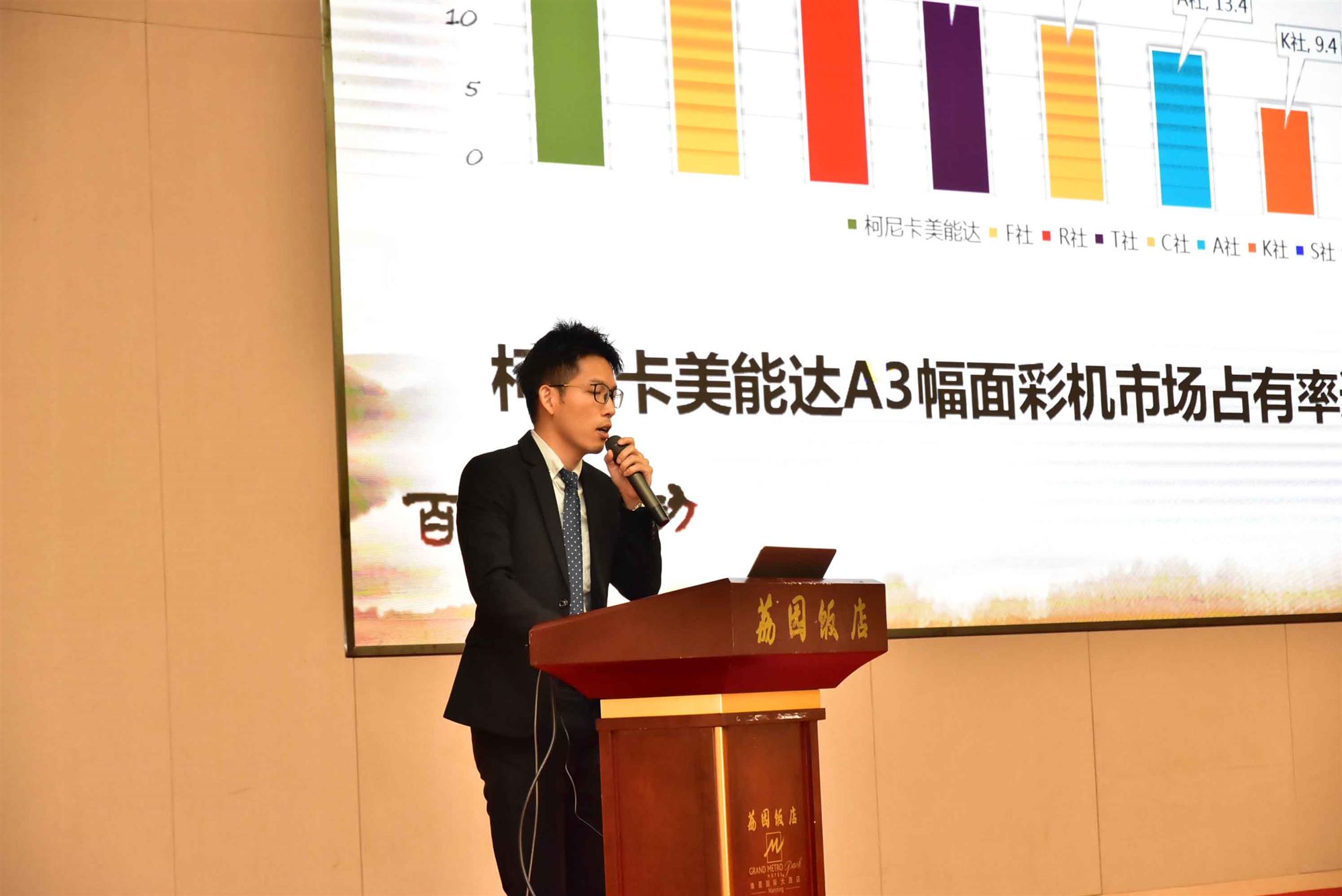 柯尼卡美能达办公系统(中国)有限公司南部第一销售课范惠飘先生分享KM在新财年的渠道政策,他说,KM将在丰富产品线、打造高利润产品、部署电商平台、拓展新兴业务上发力,与经销商携手共进。