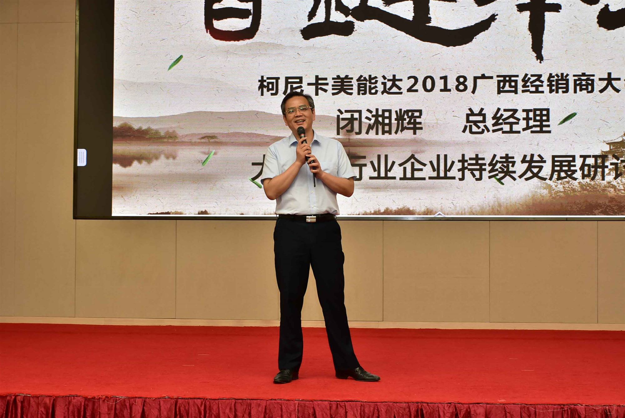 柯尼卡美能达2018广西经销商大会隆重举行。广西宏道董事长罗鸿钧、广西宏道总裁闭湘辉、柯尼卡美能达办公系统(中国)有限公司广州分公司李刚、范惠飘、黄志霖、吴志斌、何显聪以及柯尼卡美能达办公系统(中国)有限公司3D事业部崔正勇、福建科威叶景原出席大会。