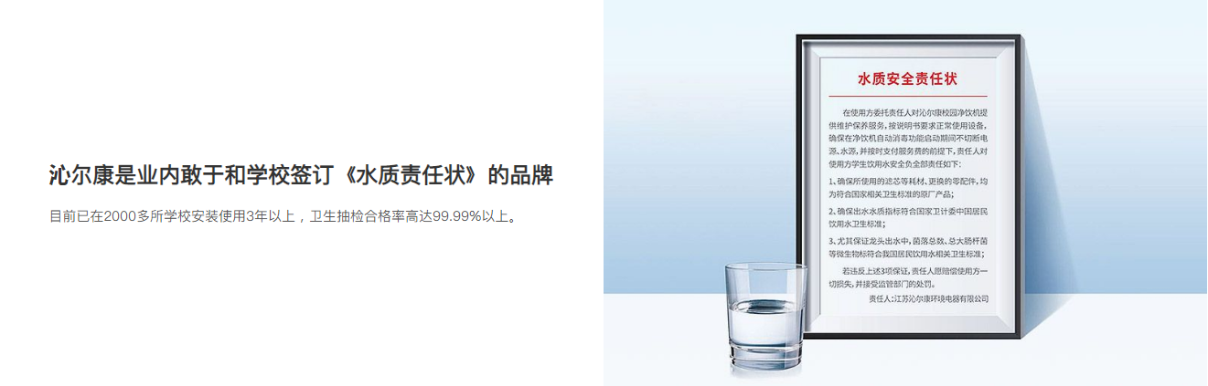 沁尔康是业内敢于和学校签订《水质责任状》的品牌