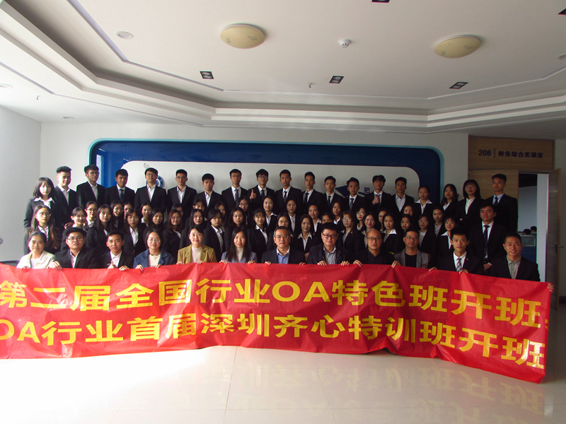 12月2日上午,第二届全国行业OA特色班及OA行业首届深圳齐心特训班开班仪式在南宁学院商科实训室203举行。深圳齐心集团经理陈铭,广西宏道(赛盟)集团总裁闭湘辉,人力资源部经理陆小磊,管理学院党总支副书记、副院长赵娟,副院长曹会兵,工商管理教研室主任李晓芬,工商管理专业负责人黄琦,深圳齐心特训班及南宁学院OA特色班的全体同学出席和参加了本次开班典礼。