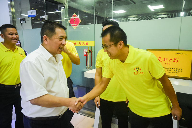 日前,茅台集团和茅台集团技术开发公司所属子公司天朝上品酒业(贵州)有限公司黄永毅总裁莅临天朝上品在广西最大的代理商——广西金朝贵人商贸有限公司总部参观考察指导工作。
